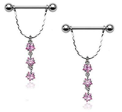 Nipple Rings barbell ring 14G. 3/4" with 5mm Ball Nipple Shield w/ 3-CZ Stars